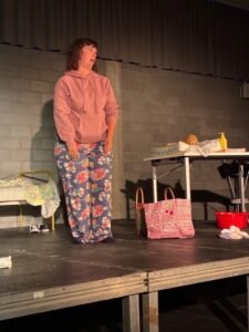 Griet Vandecappelle bracht een West-Vlaamse versie van de spitante monoloog ‘Het Ontwaken’ van Dario Fo over het hectisch bestaan van een werkende jonge moeder. Sociale humor met een duidelijk feministisch trekje. Ondertussen is gebleken dat niet de anarchistische auteur van o.a. Mystero Buffo dit stukje schreef, maar wel zijn militante echtgenote Franca Rame.