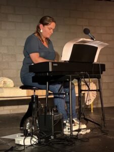 Yoke Aerbeydt, dochter van ons lid Brigitte Vanwalleghem en grootoomzegger aan onze voorzitter, speelt op de digitale piano en zingt door haar geselecteerde liederen rond ons thema Girl Power. Ze is afgestudeerde STAP in diverse muziekdisciplines en professioneel actief bij de dienst digitale communicatie van stad Roeselare.